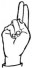 На ћирилици написано ОЛГА КОЈОВИЋ састоји се из 11 слова [?]. Исписано ћириличном једноручном азбуком за глувонеме: